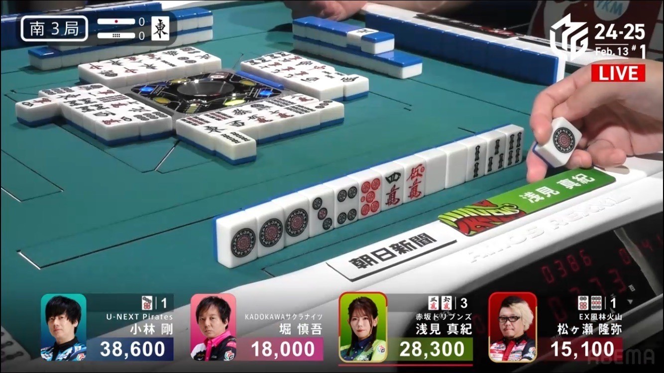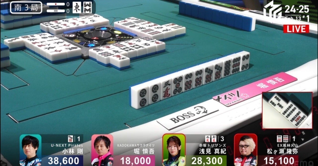 在前几天的MLeague比赛中,我在比赛中被夹在两面立直和进攻之间,向刚桑放铳了1000点。