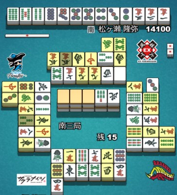 我已经无法和牌了,如果让竞争对手和牌,我的局势只会更糟。现在我还面对着一个包含暗杠的两家立直的局面,而我的手牌简直是地狱一般。”