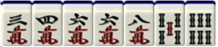 同样,索子方面,已经切了23s,且8s已经出现了4张,因此从34668m 357s这样的手牌中,几乎不会选择留下8m而切掉3s,从而缩小自己的听牌范围。所以,索子方面也几乎不存在坎张的愚形搭子。